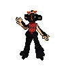 Tuesday is 5’4″, with a thin build. Due to the results of the guzzlord hybridization experiment, they have near pitch-black skin, a flail-like spiked tail, horns, and their hair took on a more ‘bleached’ appearence.